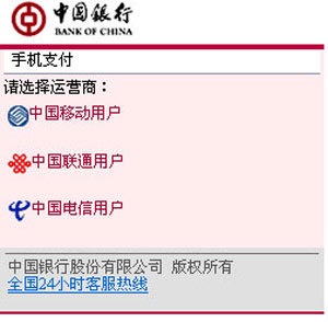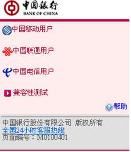 開通手機(jī)銀行(理財(cái)版或貴賓版)后,請通過手機(jī)登錄中國銀行手機(jī)銀行地址“mbs.boc.cn”(圖1),進(jìn)入選擇運(yùn)營商頁面。