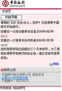 已開通中行網(wǎng)銀理財(cái)版或貴賓版的用戶,可以通過手機(jī)登錄“中銀掌上行”wap網(wǎng)址mbs.boc.cn,選擇自助注冊功能,輸入身份證件信息、借記卡號及其電話銀行密碼,驗(yàn)證動(dòng)態(tài)口令,設(shè)置“中銀掌上行”登錄密碼,即可完成注冊,立刻享用“中銀掌上行”理財(cái)版、貴賓版服務(wù)(“中銀掌上行”版本與客戶使用的中行網(wǎng)銀版本一致)。