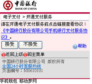 閱讀手機(jī)支付服務(wù)協(xié)議,如同意,點(diǎn)擊“接受”(圖7)。