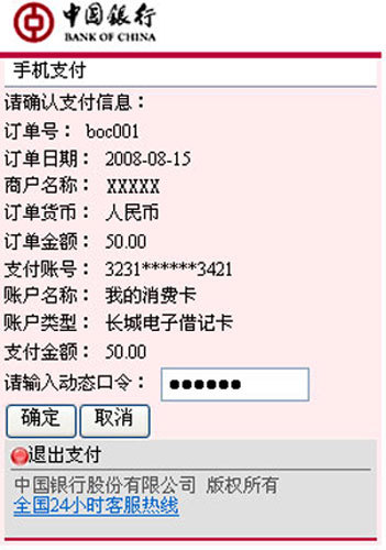確認(rèn)支付信息無誤后,輸入動(dòng)態(tài)口令,點(diǎn)擊“確定”(圖15)。