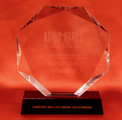 In a November 2006 article of the 21st Century Business Herald, Bank of China was named as the "Best International Banking Award" as one of the "Top 10 Asian Commercial Banks for Business Growth".