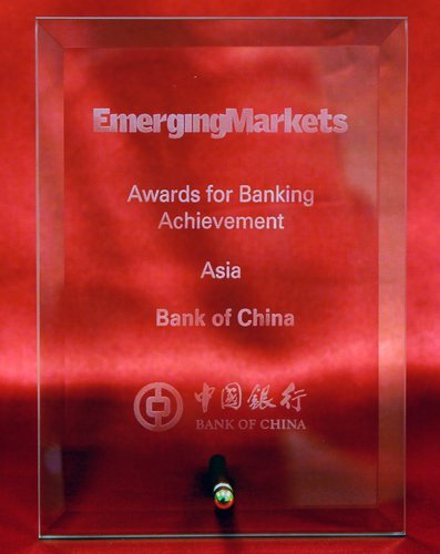 In the September 2006 issue of the EmergingMarkets, Bank of China was named as the "Awards for Banking Achievement – Asia".