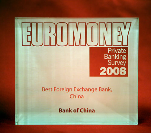 In the March 2008 issue of the Euromoney, Bank of China was named as the "Best Foreign Exchange Bank, China" from the Private Banking Survey 2008.