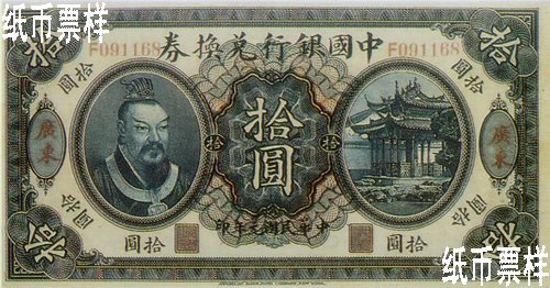 Following the issuance of redeemable notes bearing the portrait of Li Hongzhang in 1912, Bank of China issued redeemable notes bearing the portrait of Emperor Huang Di in one yuan, five yuan and ten yuan printed by American Bank Note Company for nationwide circulation.
