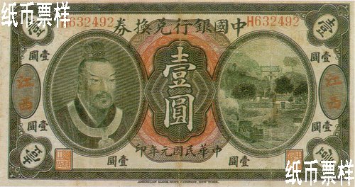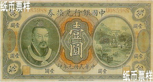 The Front of One-Yuan Hankou Local Redeemable Note Bearing the Portrait of Emperor Huang Di