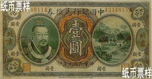 The Front of One-Yuan Fengtian Local Redeemable Note Bearing the Portrait of Emperor Huang Di