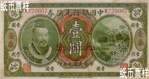 One-Yuan Anhui Local Redeemable Note Bearing the Portrait of Emperor Huang Di