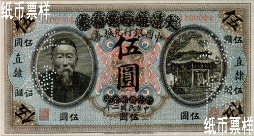 In 1913, Bank of China re-issued the transformed Li Hongzhang redeemable notes as Bank of China redeemable notes for circulation in Zhili.
