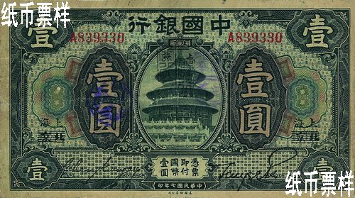 "The 7th Year of the Republic of China" printed on the front and "SEPTEMBER 1918" on the back |