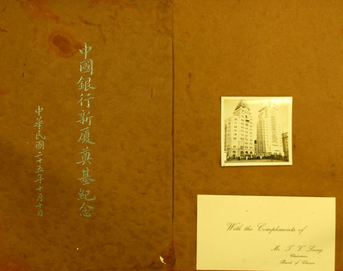 The foundation card signed by T.V. Soong, then Chairman of Bank of China