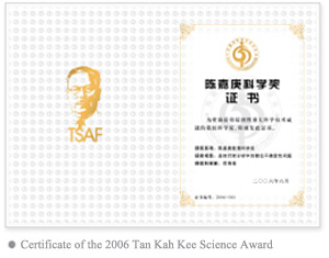 Bank of China highly values the scientific development in the country. In 2003, in cooperation with Chinese Academy of Sciences, the Bank contributed RMB 10 million to re-establish the Tan Kah Kee Science Award Foundation, in order to reward the significant scientific achievements. This Foundation has six awards including Mathematical Sciences Award (in areas of mathematics, physics, mechanics and astronomy), Chemical Science Award, Life Science Award (in areas of biology, medicine and agriculture), Geo-science Award, Technology Science Award, and Information Technology Award. Four scientists including Fan Haifu, a crystallology specialist and member of Chinese Academy of Sciences, were granted the Tan Kah Kee Science Award for their great contributions in 2006. In 2007, Bank of China made an additional donation of RMB 10 million to the Foundation.