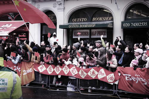 Staff of Bank of China London Branch greeting the Olympic torch