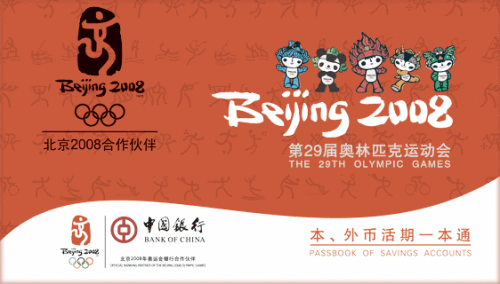 Bank of China introduced the "Fuwa Passbook" with Olympic features at the end of April 2007, which was well received by Bank of China's overseas customers as well as travelers and athletes from other countries during the Olympic Games.